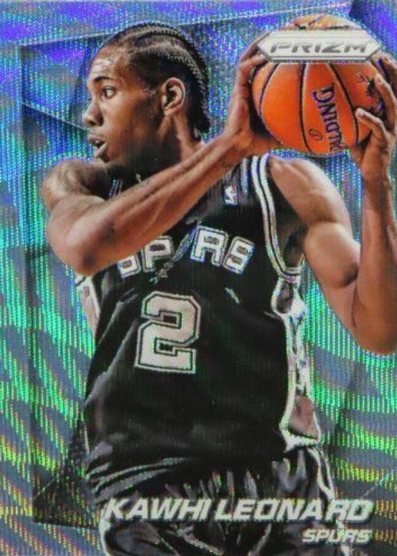 This card is 1 of 18 Kawhi Leonard's card variations in the 2014 Prizm set being tracked by Sports Card Investor, including Base, Blue Green Mosaic, Blue Mojo, Green, and Red White Blue Pulsar.