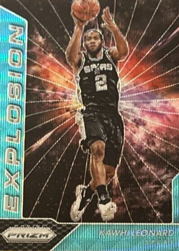 The Kawhi Leonard 2016 Prizm #13 Explosion - Teal Wave /25 card in Raw condition has not changed in price in the last 30 days and was last sold for $36.90 .