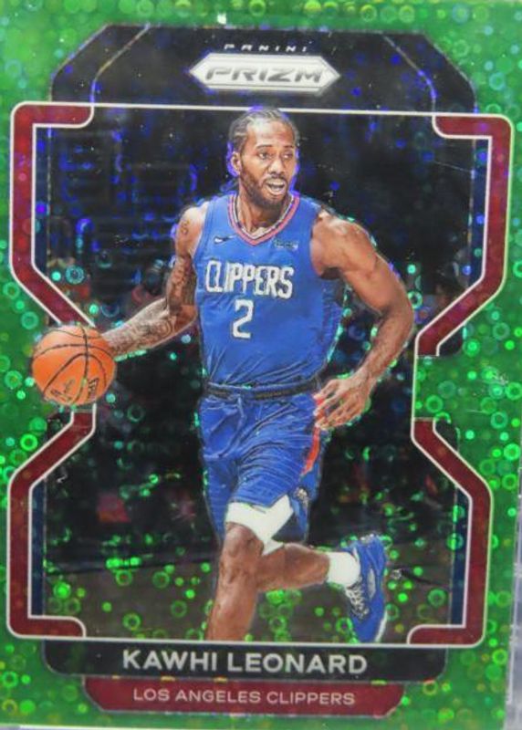 The Kawhi Leonard 2021 Prizm #71 Fast Break Neon Green /5 card in Raw condition has not changed in price in the last 30 days and was last sold for $32.00 .