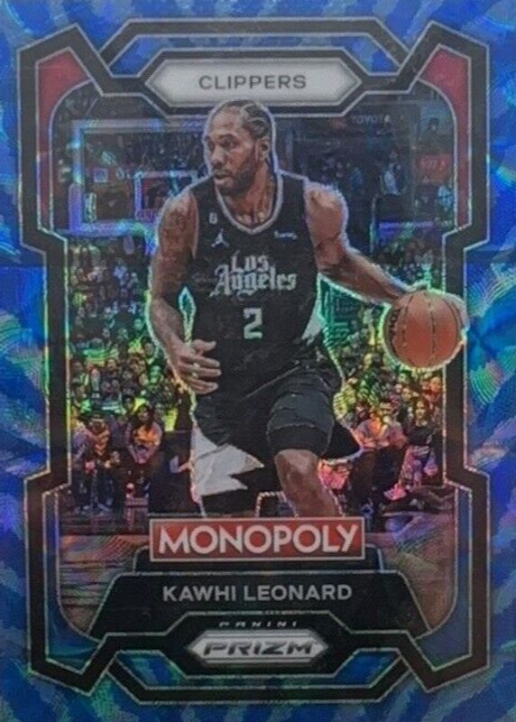 Kawhi Leonard 2023 Prizm Monopoly #37 Boardwalk Blue Tiger Stripe RAW Price Guide