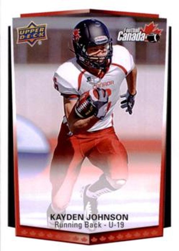 The Kayden Johnson 2015 Upper Deck USA #127 Base card is 1 of 3 Kayden Johnson's card variations in the 2015 Upper Deck USA set being tracked by Sports Card Investor, including Future Swatch, and Future Swatch Patch /99.