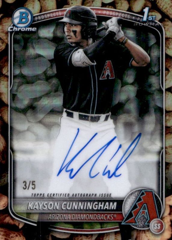 Kayson Cunningham 2025 Bowman Draft #CPA-KC Chrome Prospect Auto - Peanuts Refractor /5 (1st) RAW Price Guide