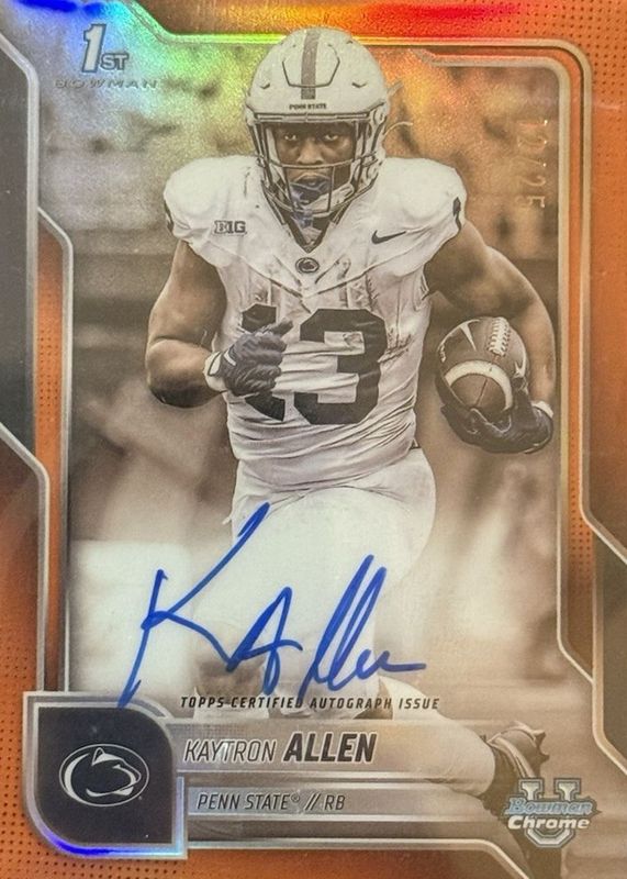 Kaytron Allen 2025 Bowman Chrome University #BCA-KA Prospect Auto - Orange Refractor /25 (1st) RAW Price Guide