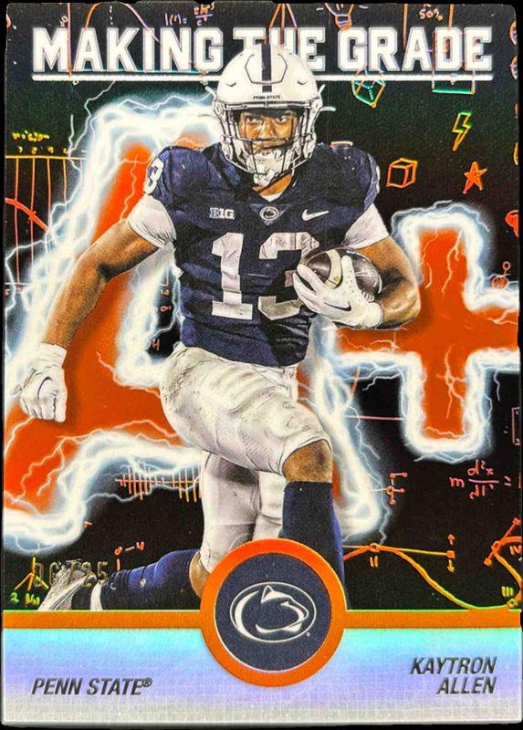 The Kaytron Allen 2025 Bowman's Best #MG-7 Making The Grade - Orange Refractor /25 card is 1 of 61 Kaytron Allen's card variations in the 2025 Bowman's Best set being tracked by Sports Card Investor, including Base, Refractor, Shimmer Refractor, Yellow Lazer Refractor /250, and Aqua Lava Refractor /199.