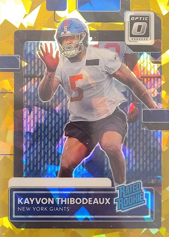 The Kayvon Thibodeaux 2022 Donruss #P-352 Optic Preview - Gold Ice /10 Rookie card in Raw condition has not changed in price in the last 30 days and was last sold for $75.00 .