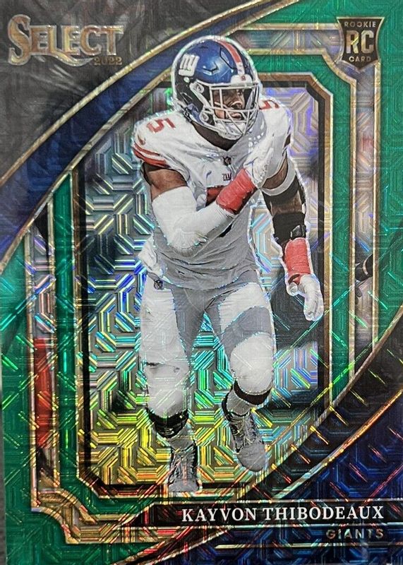 This card is 1 of 62 Kayvon Thibodeaux's card variations in the 2022 Select set being tracked by Sports Card Investor, including Premier Level, Suite Level, Premier Level Black & Green Die-Cut, Premier Level Black & Red Die-Cut, and Premier Level Disco.