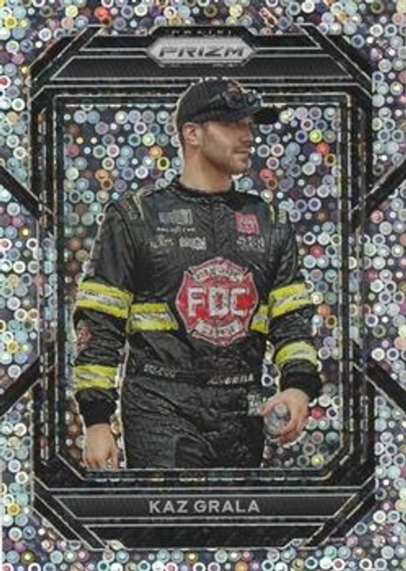The Kaz Grala 2023 Prizm NASCAR #30 Disco /75 card is 1 of 32 Kaz Grala's card variations in the 2023 Prizm NASCAR set being tracked by Sports Card Investor, including Base, Hyper Blue & Carolina Blue, Hyper Purple & Yellow, Reactive Orange, and Red.