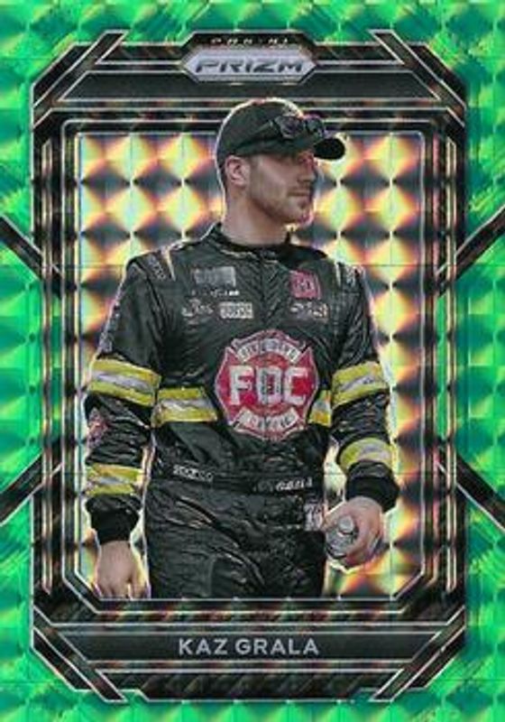 The Kaz Grala 2023 Prizm NASCAR #30 Reactive Green /249 card is 1 of 32 Kaz Grala's card variations in the 2023 Prizm NASCAR set being tracked by Sports Card Investor, including Base, Hyper Blue & Carolina Blue, Hyper Purple & Yellow, Reactive Orange, and Red.