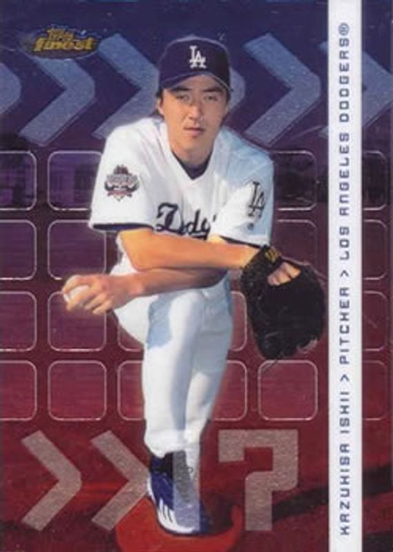 The Kazuhisa Ishii 2002 Topps Finest #82 Base Rookie card is 1 of 3 Kazuhisa Ishii's card variations in the 2002 Topps Finest set being tracked by Sports Card Investor, including Refractor /499, and X-Fractor /299.