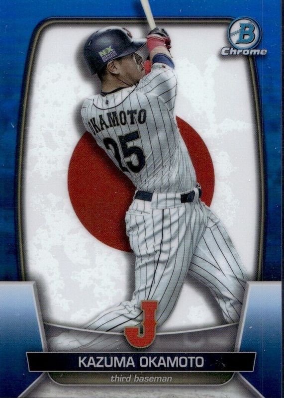 2023 Bowman Chrome Kazuma Okamoto WBC Flag Variations Blue Refractor #30/75