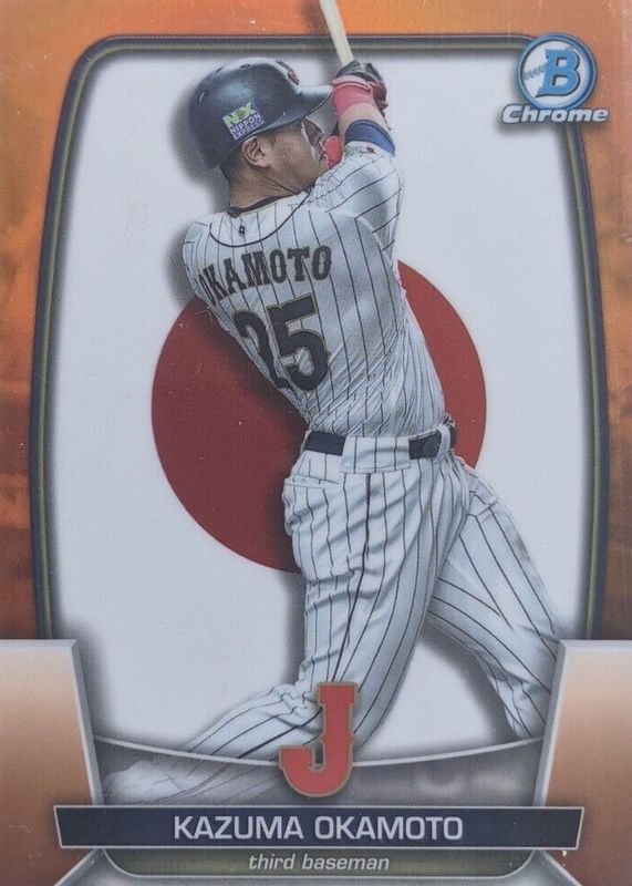 Kazuma Okamoto 2023 Bowman Chrome WBC Orange Flag Refractor /25 Japan Blue Jays
