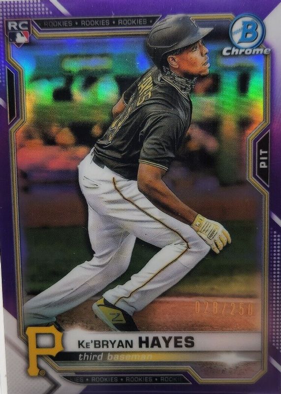 2021 Bowman Chrome KeBryan Hayes Pirates Reds 29 Purple Refractor /250 RC Rookie