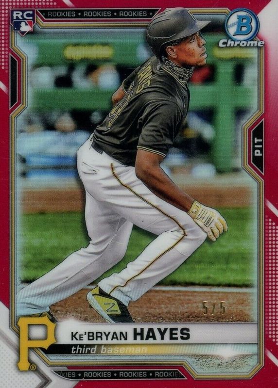 This card is 1 of 13 Ke'Bryan Hayes' card variations in the 2021 Bowman Chrome set being tracked by Sports Card Investor, including Base, SP Rookie Image Variation, Refractor /499, Pink Refractor /299, and Purple Refractor /250.