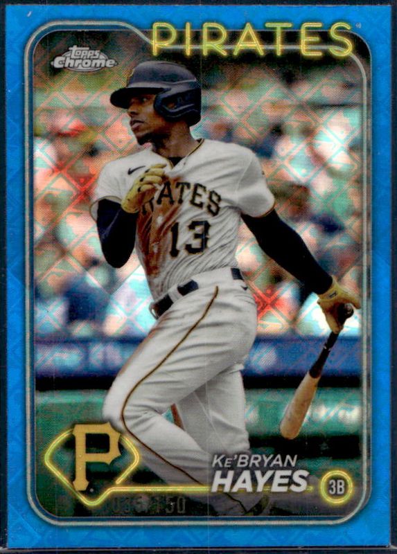 The Ke'Bryan Hayes 2024 Topps Chrome Logofractor Edition #285 Blue /150 card is 1 of 10 Ke'Bryan Hayes' card variations in the 2024 Topps Chrome Logofractor Edition set being tracked by Sports Card Investor, including Base, Purple /250, Aqua /199, Green /99, and Gold /50.