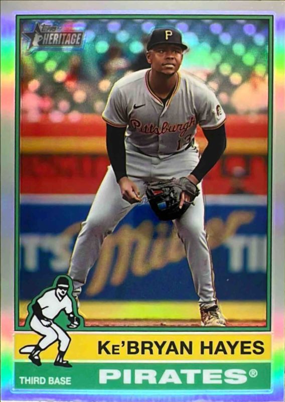 The Ke'Bryan Hayes 2025 Topps Heritage #360 Chrome - Red Refractor card is 1 of 29 Ke'Bryan Hayes' card variations in the 2025 Topps Heritage set being tracked by Sports Card Investor, including Base, Black Border, Dark Blue Border, Dark Green Border, and Dark Yellow Border.