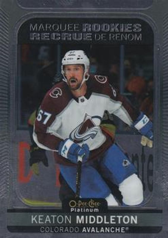 The Keaton Middleton 2021 O-Pee-Chee Platinum #261 Base Rookie card is 1 of 17 Keaton Middleton's card variations in the 2021 O-Pee-Chee Platinum set being tracked by Sports Card Investor, including Blue Surge, Matte Pink, Neon Yellow Surge, Rainbow, and Red Surge.