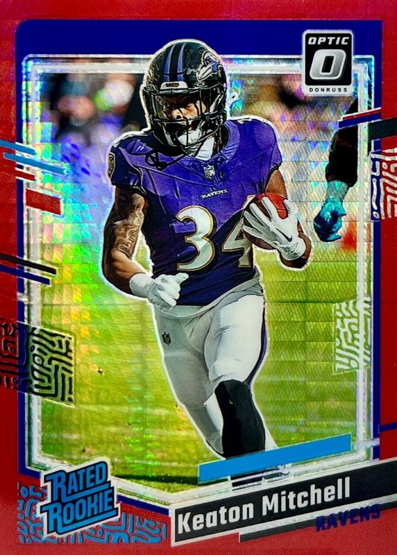 Keaton Mitchell #207 2023 Donruss Optic Red Hyper Prizm Rated Rookie Ravens
