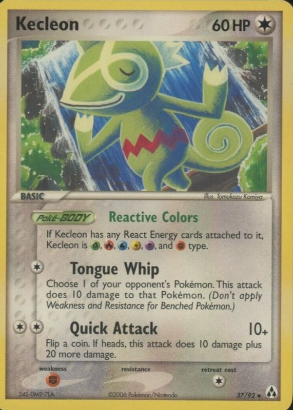 The Kecleon 2006 EX: Legend Maker #37/92 Base card in Raw TCG (Near Mint) condition has not changed in price in the last 30 days and was last sold for $2.00 .