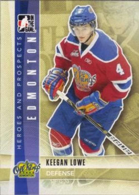 The Keegan Lowe 2011 In The Game Heroes & Prospects #77 Base card is 1 of 11 Keegan Lowe's card variations in the 2011 In The Game Heroes & Prospects set being tracked by Sports Card Investor, including Autographs, Game Used Emblems Black, Game Used Emblems Silver, Game Used Jerseys Black, and Game Used Jerseys Gold.