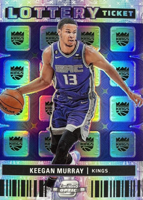 The Keegan Murray 2022 Contenders Optic #4 Lottery Ticket Rookie card in Raw condition has not changed in price in the last 30 days and was last sold for $8.59 .