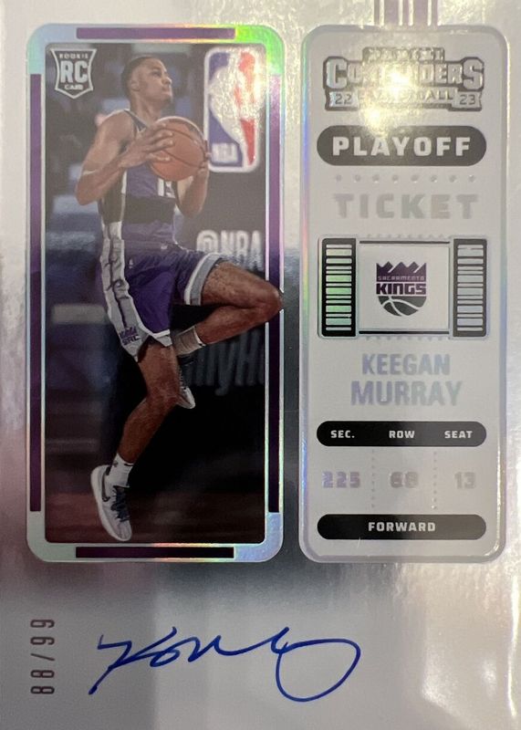 This card is 1 of 27 Keegan Murray's card variations in the 2022 Contenders set being tracked by Sports Card Investor, including Rookie Ticket Auto, Rookie Ticket Auto - Premium, Rookie Ticket Auto - Premium Green Shimmer, Rookie Ticket Auto - Ticket Stub (/13), and Rookie Ticket Auto Variation.