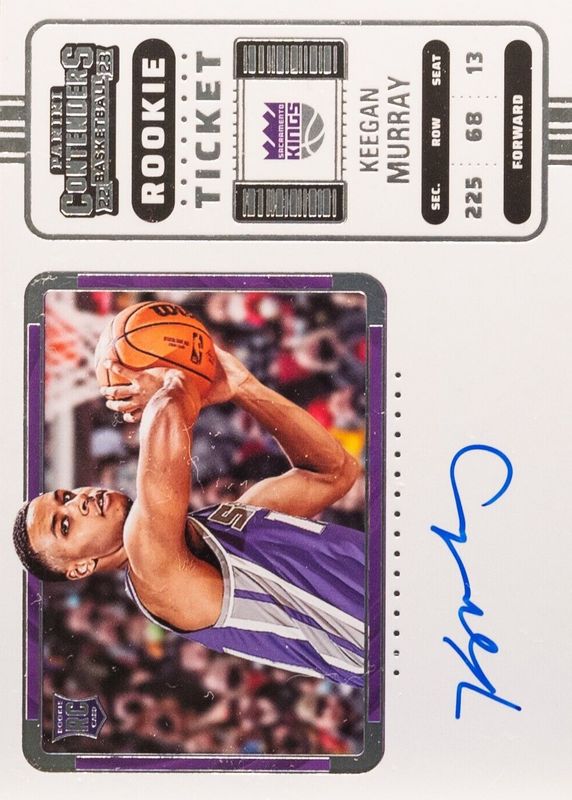 This card is 1 of 27 Keegan Murray's card variations in the 2022 Contenders set being tracked by Sports Card Investor, including Rookie Ticket Auto, Rookie Ticket Auto - Premium, Rookie Ticket Auto - Premium Green Shimmer, Rookie Ticket Auto - Ticket Stub (/13), and Rookie Ticket Auto Variation - Premium.