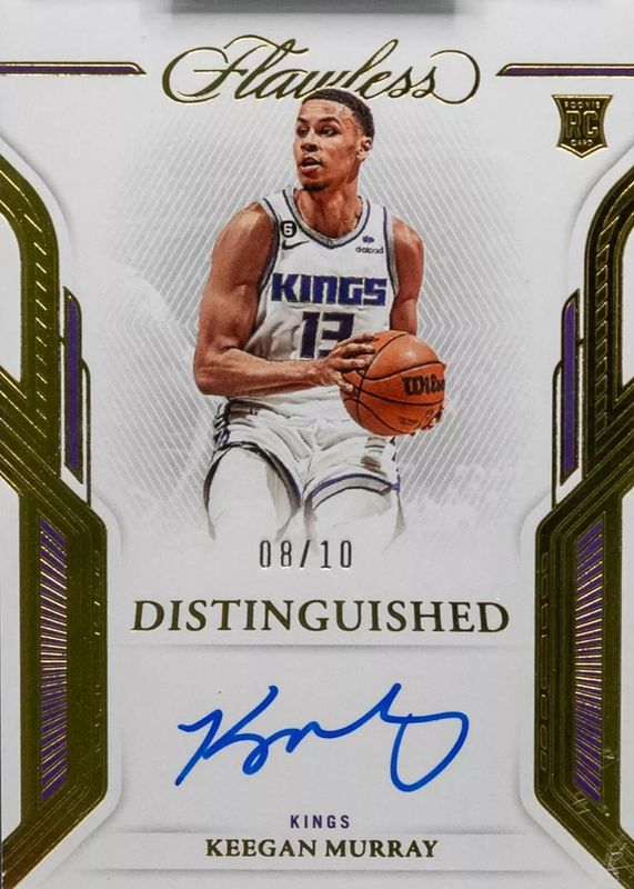 The Keegan Murray 2022 Flawless #DA-KGM Distinguished Autographs - Gold /10 Rookie card in Raw condition has not changed in price in the last 30 days and was last sold for $300.00 .