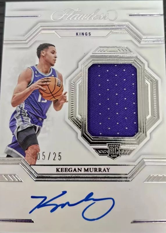 This card is 1 of 58 Keegan Murray's card variations in the 2022 Flawless set being tracked by Sports Card Investor, including Star Swatch Signatures (/25), Distinguished Autographs /25, Excellence Signatures /25, Flawless Patch Autographs /25, and Horizontal Patch Autographs /25.