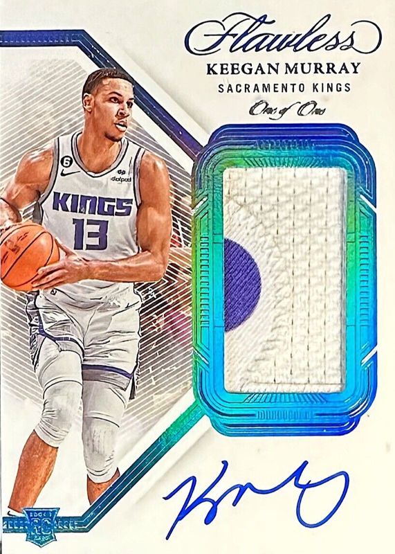 This card is 1 of 58 Keegan Murray's card variations in the 2022 Flawless set being tracked by Sports Card Investor, including Star Swatch Signatures (/25), Distinguished Autographs /25, Excellence Signatures /25, Flawless Patch Autographs /25, and Horizontal Patch Autographs /25.