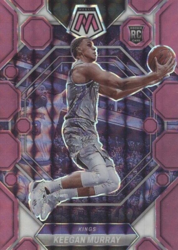 The Keegan Murray 2022 Mosaic #227 Pink Fluorescent /10 Rookie card in Raw condition has not changed in price in the last 30 days and was last sold for $48.00 .