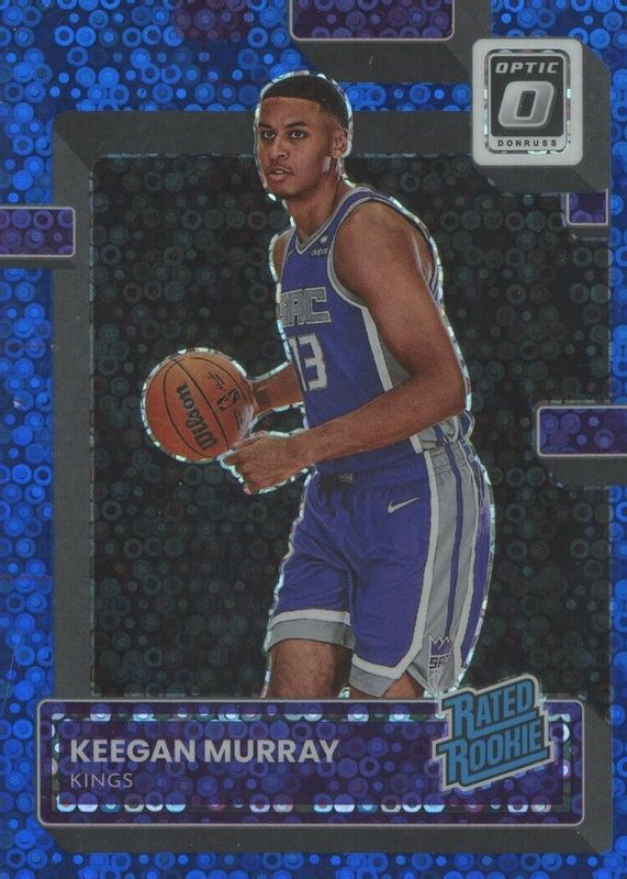 The Keegan Murray 2022 Optic #214 Fast Break Blue /49 Rookie card in Raw condition has not changed in price in the last 30 days and was last sold for $13.00 .