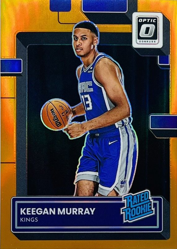 The Keegan Murray 2022 Optic #214 Orange /199 Rookie card in Raw condition has not changed in price in the last 30 days and was last sold for $8.00 .