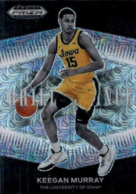 The Keegan Murray 2022 Prizm Draft Picks #BR-KM Brilliance - Mojo /25 Rookie card is 1 of 158 Keegan Murray's card variations in the 2022 Prizm Draft Picks set being tracked by Sports Card Investor, including #55 Base, #55b Base, #55 Blue Circles, #55b Choice Blue Yellow & Green, and #55 Choice Blue Yellow & Green.
