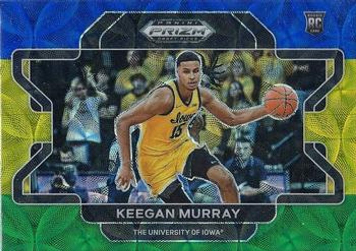 The Keegan Murray 2022 Prizm Draft Picks #55b Choice Blue Yellow & Green Rookie card is 1 of 158 Keegan Murray's card variations in the 2022 Prizm Draft Picks set being tracked by Sports Card Investor, including #55 Base, #55b Base, #55 Blue Circles, #55 Choice Blue Yellow & Green, and #55 Choice Tiger Stripe.