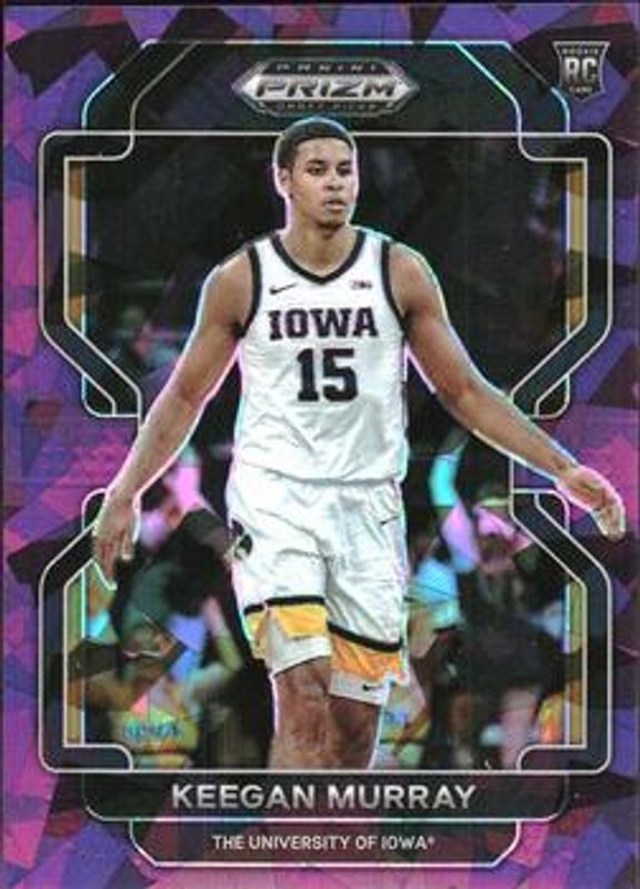The Keegan Murray 2022 Prizm Draft Picks #55 Purple Ice /149 Rookie card is 1 of 158 Keegan Murray's card variations in the 2022 Prizm Draft Picks set being tracked by Sports Card Investor, including #55 Base, #55b Base, #55 Blue Circles, #55b Choice Blue Yellow & Green, and #55 Choice Blue Yellow & Green.