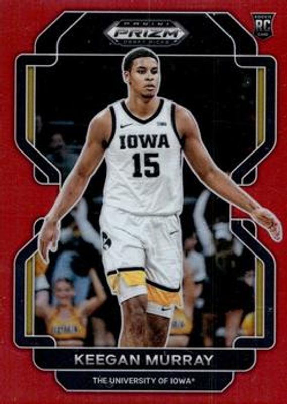 The Keegan Murray 2022 Prizm Draft Picks #55 Red /299 Rookie card is 1 of 158 Keegan Murray's card variations in the 2022 Prizm Draft Picks set being tracked by Sports Card Investor, including #55 Base, #55b Base, #55 Blue Circles, #55b Choice Blue Yellow & Green, and #55 Choice Blue Yellow & Green.