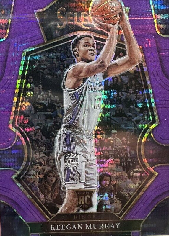 The Keegan Murray 2022 Select #197 Premier Level Neon Purple Pulsar /5 Rookie card in Raw condition has not changed in price in the last 30 days and was last sold for $315.00 .