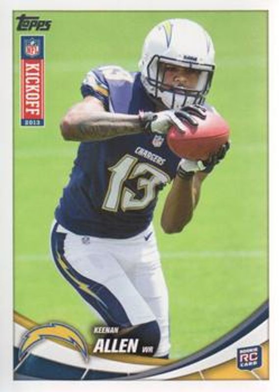 The Keenan Allen 2013 Topps Kickoff #34 Base Rookie card is 1 of 2 Keenan Allen's card variations in the 2013 Topps Kickoff set being tracked by Sports Card Investor, including Autographs /79.