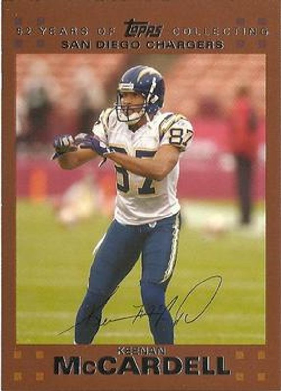 Keenan McCardell's Football cards are available in at least 86 sets. Keenan McCardell's biggest 7-day price movers are 2007 Topps #177 Copper /2007, 2007 Topps #177 Platinum /1, and 2007 Topps #177 Gold /52.
