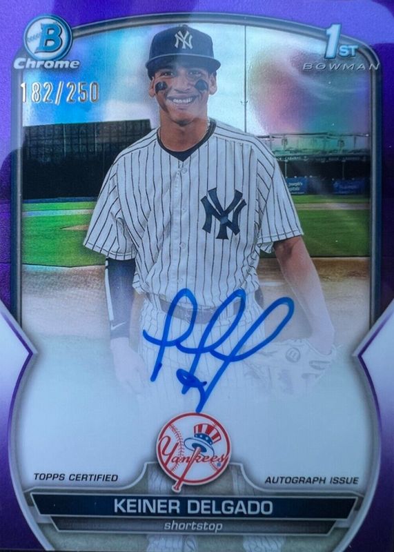 2023 Bowman Chrome Prospect Purple Refractor 178/250 Keiner Delgado #CPA-KD Auto