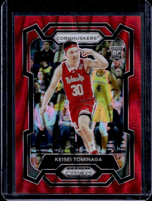The Keisei Tominaga 2024 Prizm Draft Picks #26 Red Seismic /225 card is 1 of 57 Keisei Tominaga's card variations in the 2024 Prizm Draft Picks set being tracked by Sports Card Investor, including Base, Green, Green Wave, Hyper, and Orange Ice.