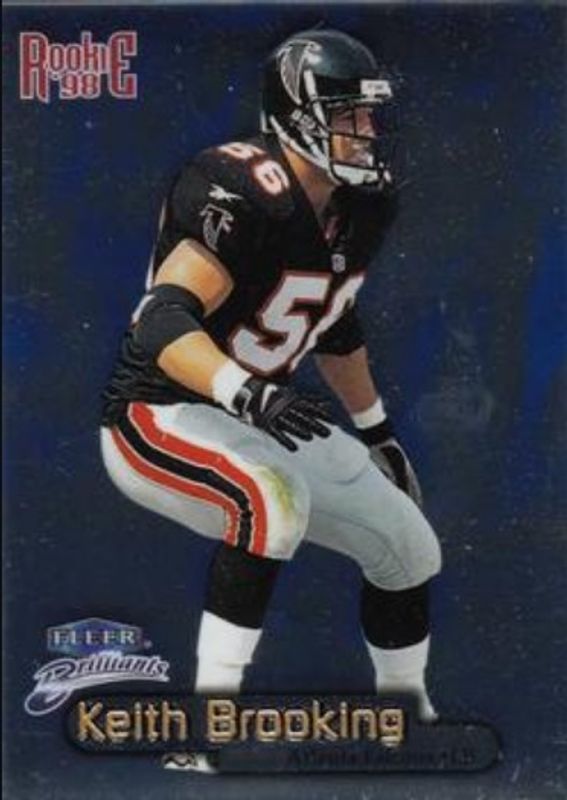 The Keith Brooking 1998 Fleer Brilliants #117B Blue Rookie card is 1 of 5 Keith Brooking's card variations in the 1998 Fleer Brilliants set being tracked by Sports Card Investor, including #117 Base, #117G Gold /99, #117TG Gold /99, and #117TG 24-Karat Gold /24.