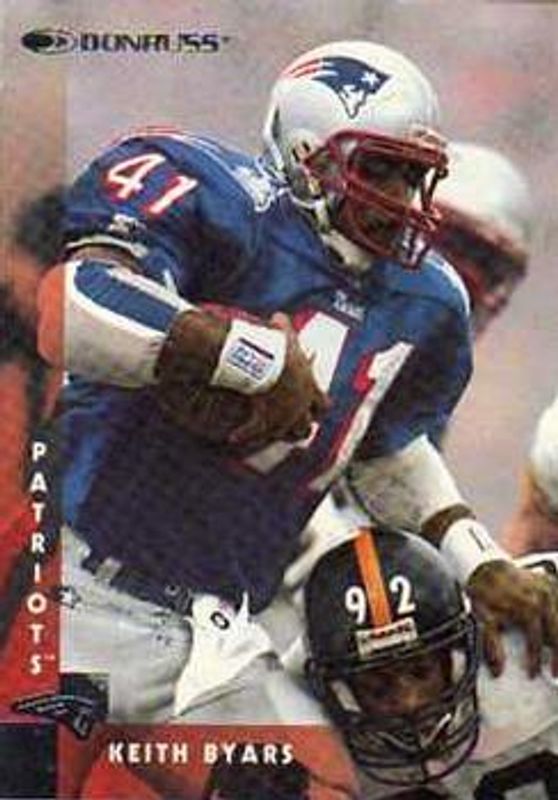 The Keith Byars 1997 Donruss #57 Base card is 1 of 3 Keith Byars' card variations in the 1997 Donruss set being tracked by Sports Card Investor, including Press Proof Gold Die-Cut, and Press Proof Silver.