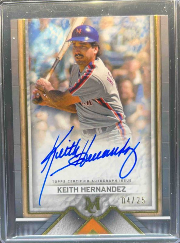 The Keith Hernandez 2023 Topps Museum Collection #AA-KH Archival Autographs - Gold /25 card is 1 of 14 Keith Hernandez's card variations in the 2023 Topps Museum Collection set being tracked by Sports Card Investor, including Archival Autographs /299, Archival Autographs - Copper /50, Meaningful Materials Relics /50, Meaningful Materials Relics - Copper /35, and Meaningful Materials Relics - Gold /25.