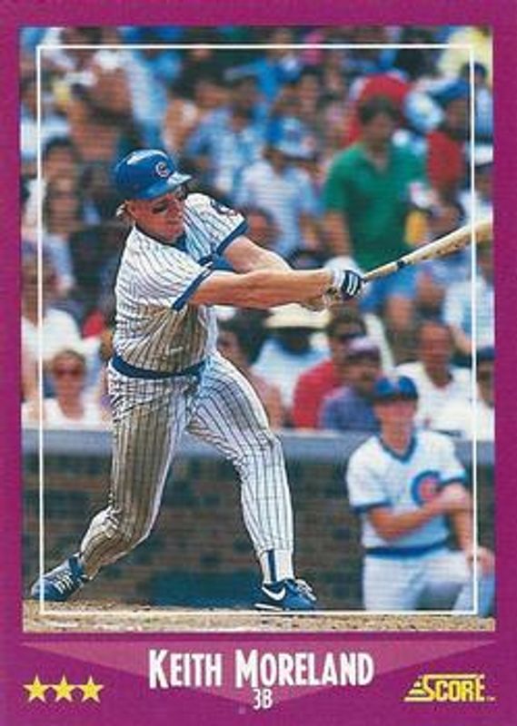 The Keith Moreland 1988 Score #71 Base card is 1 of 3 Keith Moreland's card variations in the 1988 Score set being tracked by Sports Card Investor, including Glossy, and Promos.