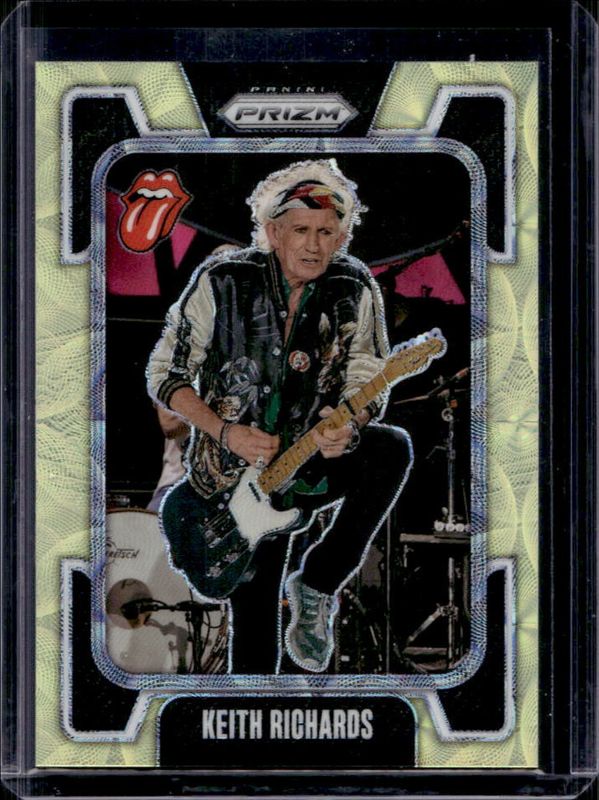 Keith Richards 2025 Prizm Rolling Stones #13 Yellow Scope /199 RAW Price Guide