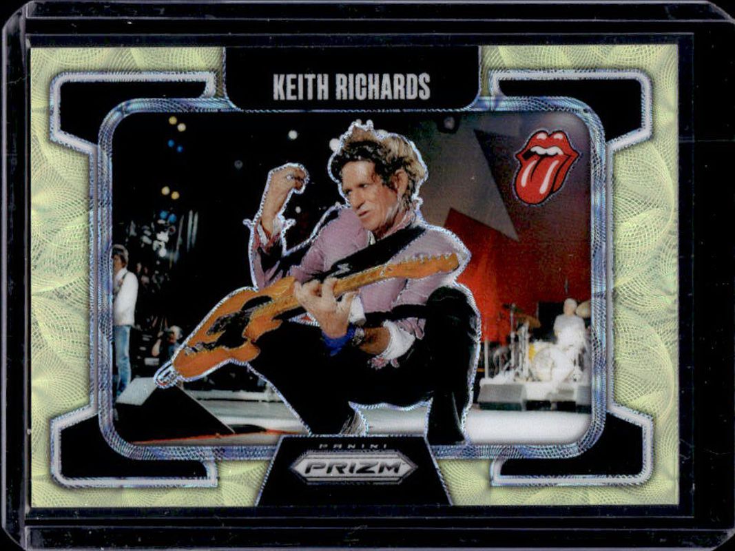 Keith Richards 2025 Prizm Rolling Stones #87 Yellow Scope /199 RAW Price Guide