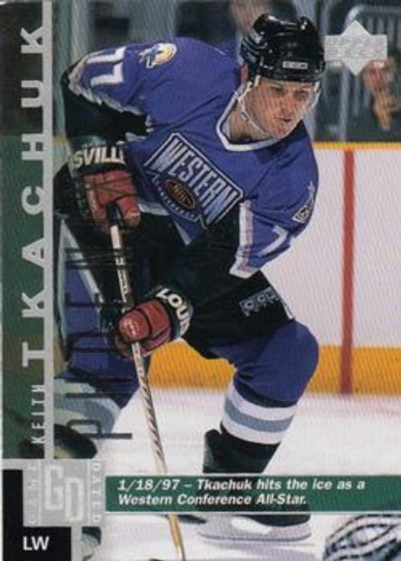 The Keith Tkachuk 1997 Upper Deck #126 Base card is 1 of 10 Keith Tkachuk's card variations in the 1997 Upper Deck set being tracked by Sports Card Investor, including Game Dated, Box Toppers, Series One Jumbo, Smooth Grooves, and The Specialists.