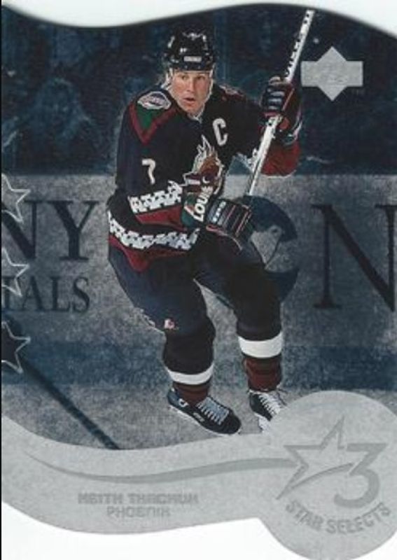The Keith Tkachuk 1997 Upper Deck #T6C Three Star Selects card is 1 of 10 Keith Tkachuk's card variations in the 1997 Upper Deck set being tracked by Sports Card Investor, including Base, Game Dated, Box Toppers, Series One Jumbo, and Smooth Grooves.