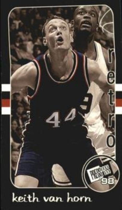 The Keith Van Horn 1998 Press Pass Double Threat #RT-31 Retros card is 1 of 5 Keith Van Horn's card variations in the 1998 Press Pass Double Threat set being tracked by Sports Card Investor, including Base, Alley Oop, Torquers, and Two On One.